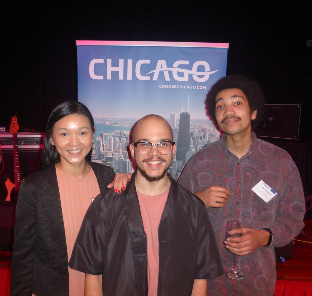 Lead image: At Choose Chicago’s Sydney event, from left to right are: Amanda Bolger, Qantas; BlackFinn, bassist; Ann Tok, Choose Chicago; Michael Damani, Blues singer-songwriter; and Will Lehnertz, Qantas.