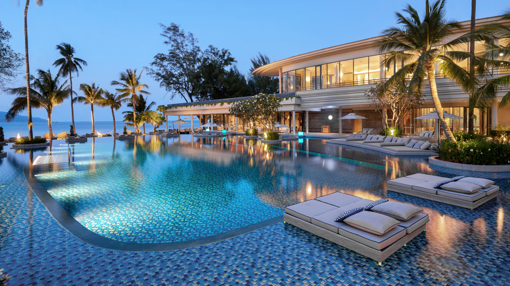 In addition to its 1,600-square-metre lagoon pool, Meliá Koh Samui features a two-level infinity pool with sunken seating areas.