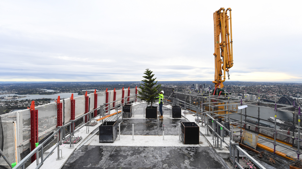 Lead image: After four years in construction, Crown Sydney tops out with the placement of an evergreen tree.