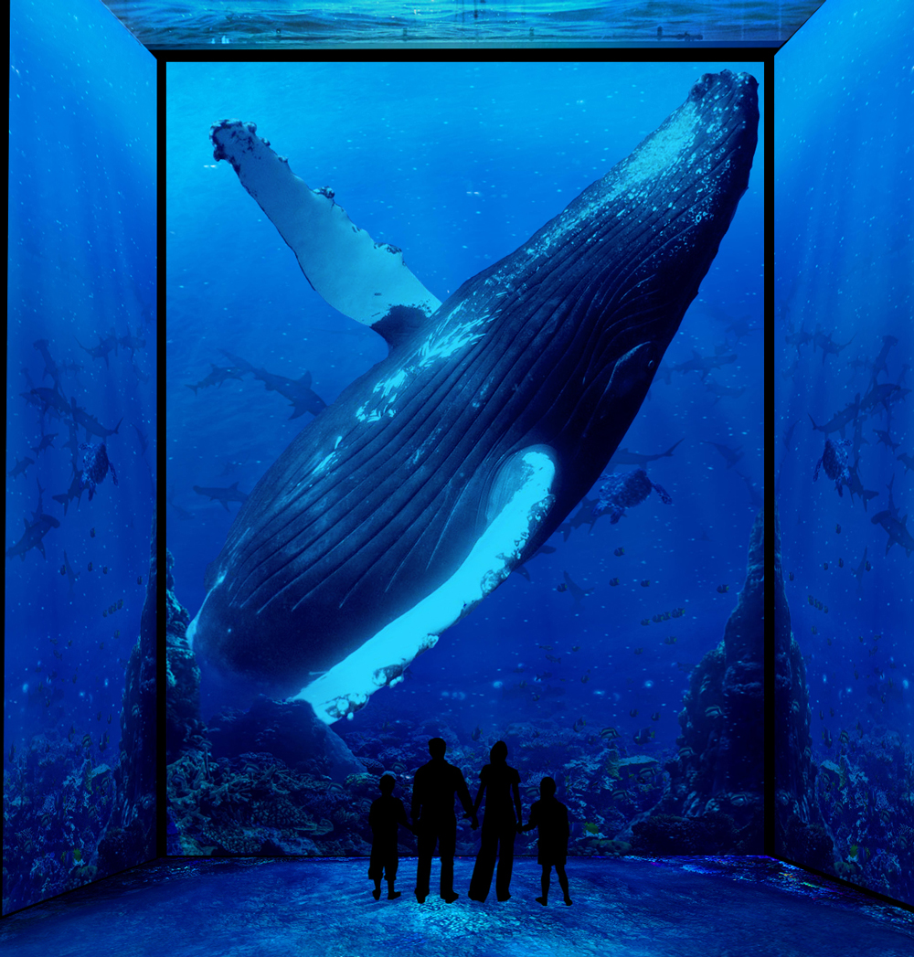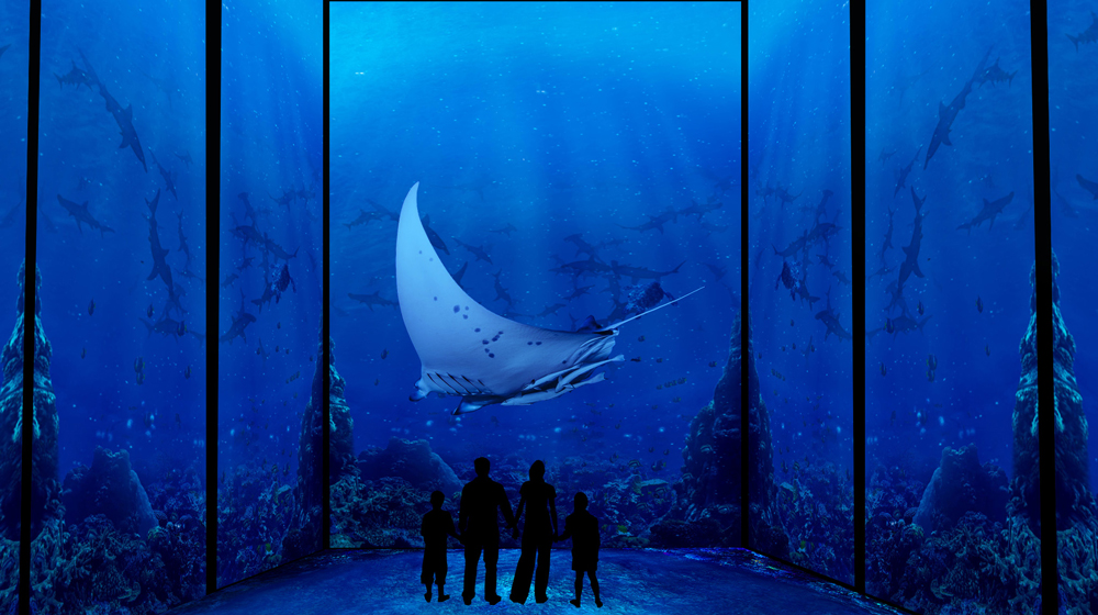 With an experience centred around the sensation of diving, visitors can see various species evolve naturally around them, as they interact according to their behaviours, their movements and their gestures. The public travels through a living environment where all encounters are possible: from the humpback whale to the carpet shark, from barracudas to fluorescent corals.