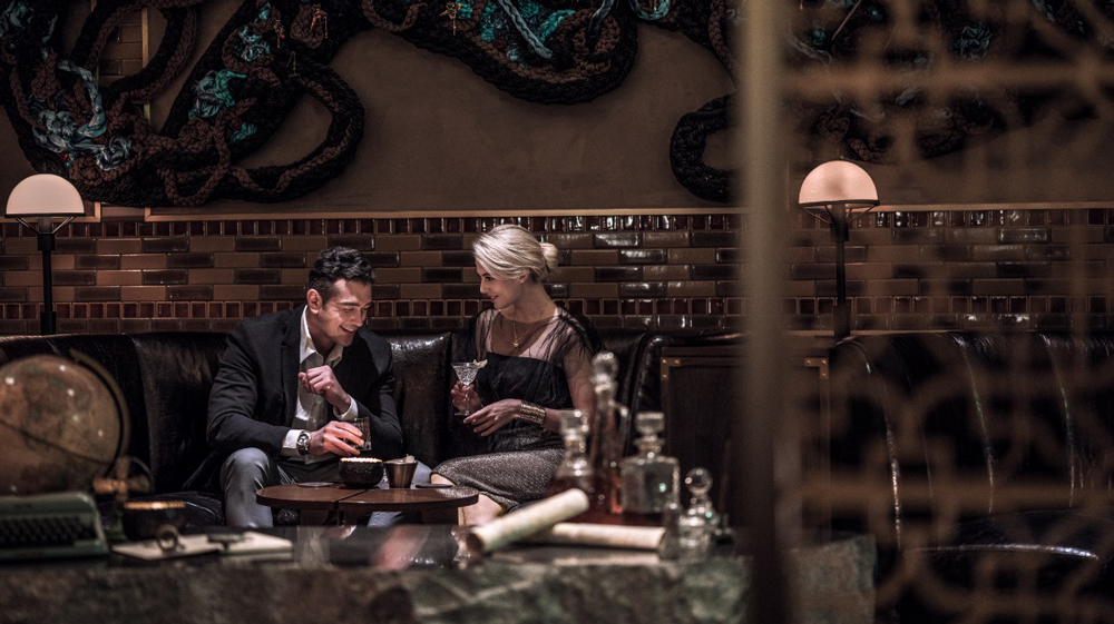 On a hotel tour, I ogle the soaring lobby with a gas-fuelled fire, designed – like most of the hotel – by LTW’s Su Teo. The ground floor has a Starbuck’s-like deli with high tables, which attracts millennials. Next to it is a fascinating floral boutique, notable for its boxes of fresh or dried flower heads. Down 42 spiral stairs to the lowest level, I find the amazing Market Kitchen, a 240-seat food court, designed by AvroKO. Some tables are on glass floor panels, revealing illuminated building ruins beneath. There are also two André Fu-design restaurants, Kioku Japanese, and Yu Yuan Shanghainese, on the 12th floor. And do not let me forget the hidden speakeasy, Charles H, named for cocktail writer Charles H Baker (1895-1987). There is no sign on the entrance door, but go into this long, sultry, scarlet and gold jewel, and chic women in scarlet dresses direct you past a long counter to yet another inner sanctum – no smoking allowed, at least officially.