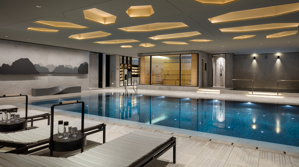 The hotel’s wellness offerings include a 25-metre pool, virtual golf, the biggest gym in town and separate-sex wet areas. The sauna is clearly signed 85 degrees, the steam room 46 degrees and big bubbling pools in the wet area range from 19.8 to 42.8 degrees. The changing area has eight completely private make-up booths, with Hollywood mirrors and toiletries. There is a napping room, with beds and a relax room with massage chairs and Bluetooth televisions.
