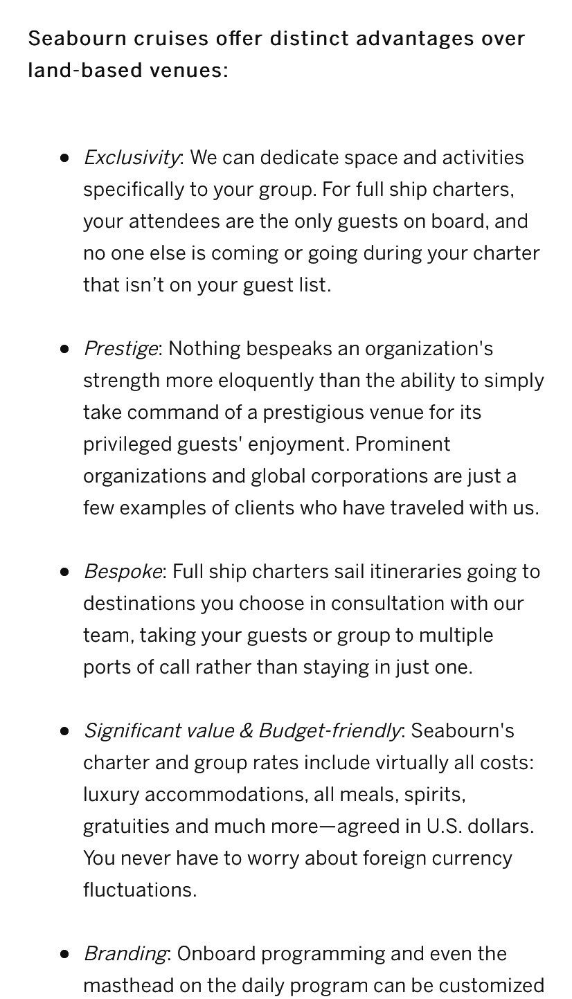 More details at seabourn.com/en_US/charters.html