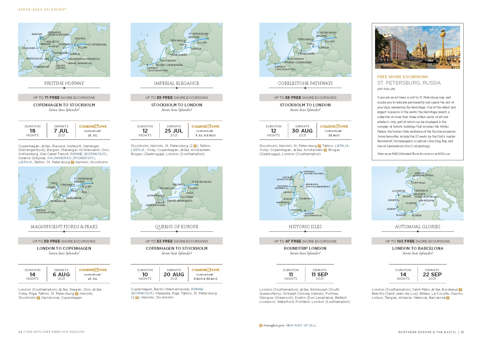 - Embark on a journey that is as extraordinary as the ship itself. In 2021, experience luxury perfected onboard Seven Seas Splendor as she sets her course toward London to celebrate her inaugural season across Northern Europe, which includes nine destination-rich itineraries to Iceland, Norway and the Baltics.
