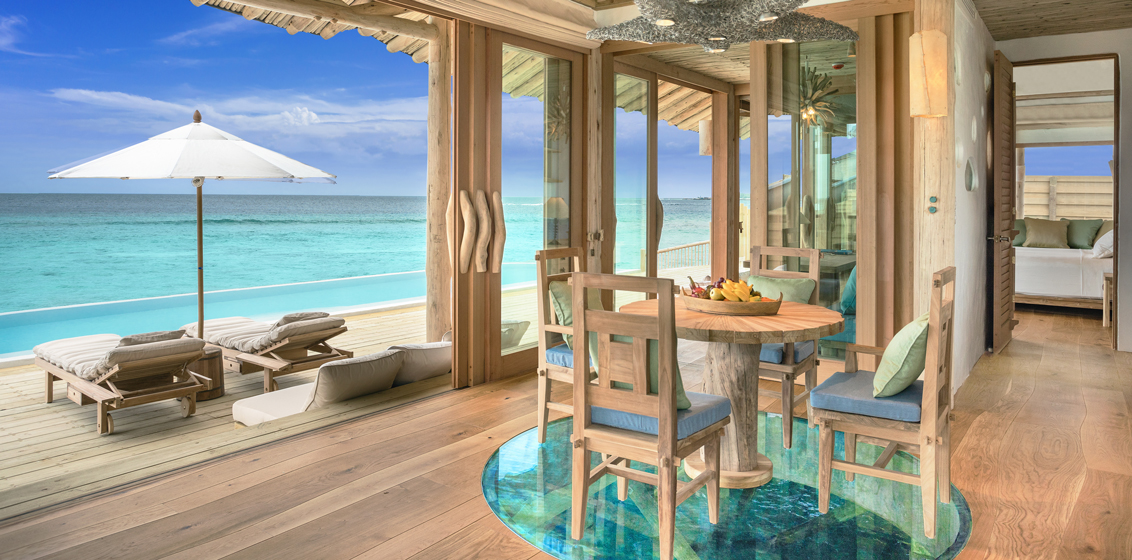 They each feature spacious interiors and exterior living spaces and the rooms can be sealed off, the doors onto the deck can be locked, and the children’s room is located at the back of the master bedroom, so they are child-friendly and suitable for young Soneva guests of all ages.