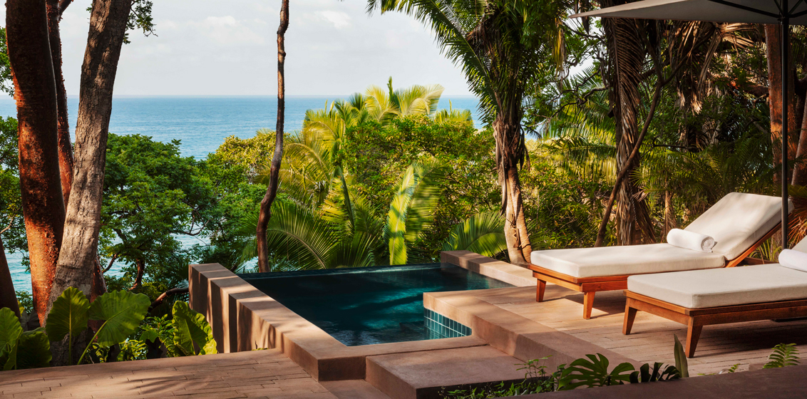 Hidden between the verdant rainforest and untouched coastline, One&Only Mandarina is comprised of standalone Treehouses and ocean-facing Villas perched cliffside among the trees, all designed for indoor and outdoor living with spectacular views of the Pacific Coast. Accommodations boast private plunge pools and terraces, floor-to-ceiling windows, glass walls and expansive bathrooms.