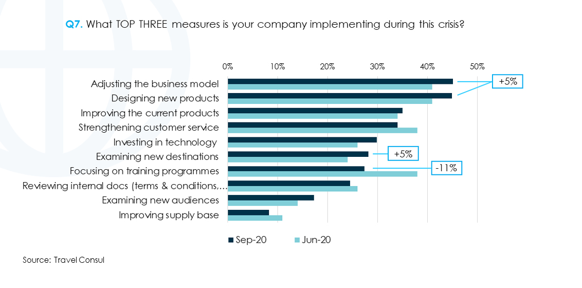 Other finds highlight the top three measures companies have implemented during the crisis, the most popular channel of communication between respondents and clients, along with the perception of the travel season changing.