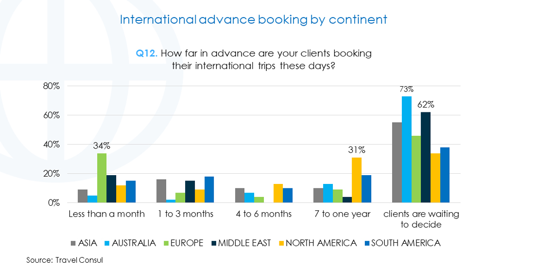 Australian travellers were the most reluctant to book future travel, with nearly three-quarters of clients waiting to decide, 11 percentage points more than the Middle East market.
