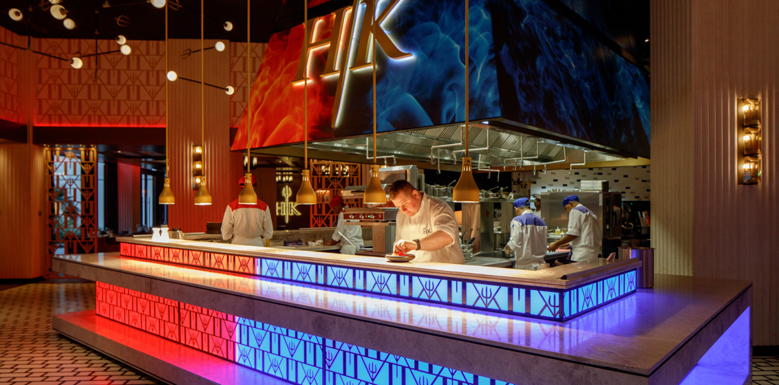 Then, surely, it must be food time, perhaps starting with a drink in the Cuban-themed bar. Among the restaurant offerings is Hell’s Kitchen, by the versatile Gordon Ramsay, perhaps better known for his Bread Streets, as here in Dubai, at Atlantis on The Palm, and in Singapore, at Marina Bay Sands. Feeling somewhat homesick, I went for an Aussie ribeye with garlic, truffled broccoli and a rocket salad. Sitting outside in the now-cooling air, we lifted our glasses of Col di Sasso 2018 Sangiovese Cabernet Sauvignon and thought, gosh, life is good here in Dubai, even for a short stay.