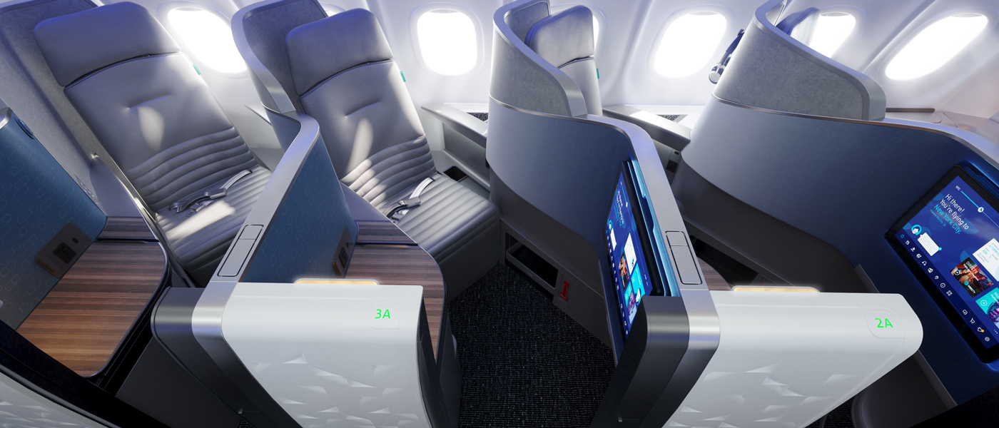 Every bit of space anticipates customer needs, with features including a tilting 17-inch Thales AVANT seatback screen, wireless charging capabilities, an integrated phone ledge for multitasking, and easy-to-reach in-seat power, as well as laptop, shoe and handbag stowage.