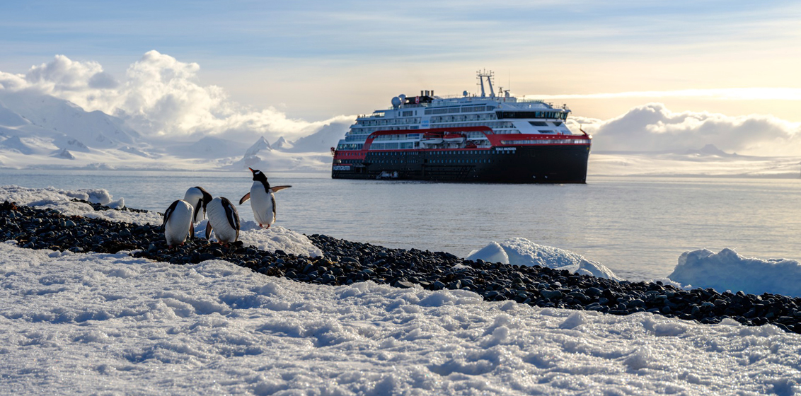 Lead image: Penguins and MS Roald Amundsen, Antarctica | Photo: Dan Avila