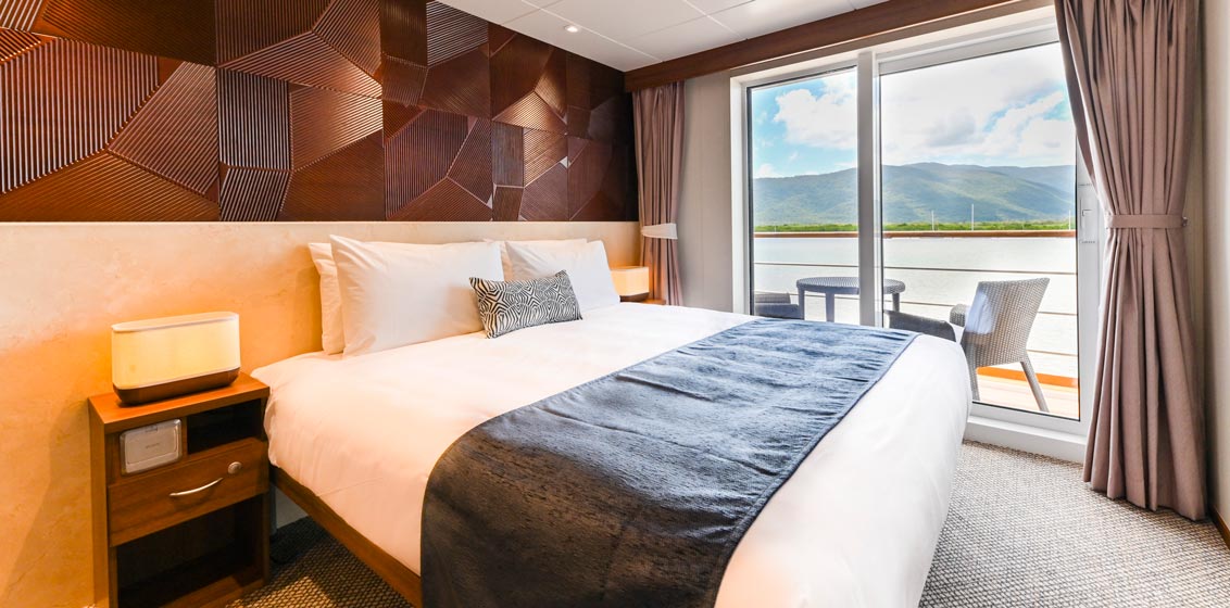 The vessel features expansive open deck spaces, relaxing lounge and bars, with the majority of balcony staterooms and suites featuring a collection of Indigenous Australian art.