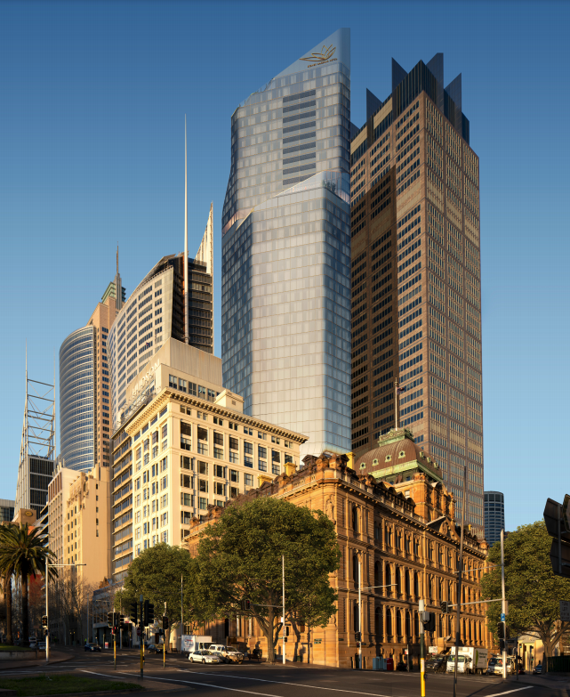 The project site incorporates that of the heritage-listed six-storey former Chief Secretary’s Building, directly opposite the Museum of Sydney, and regarded as one of the city’s most significant late-19th century architectural works. A contemporary 12-storey office building next door is also part of the envelope.