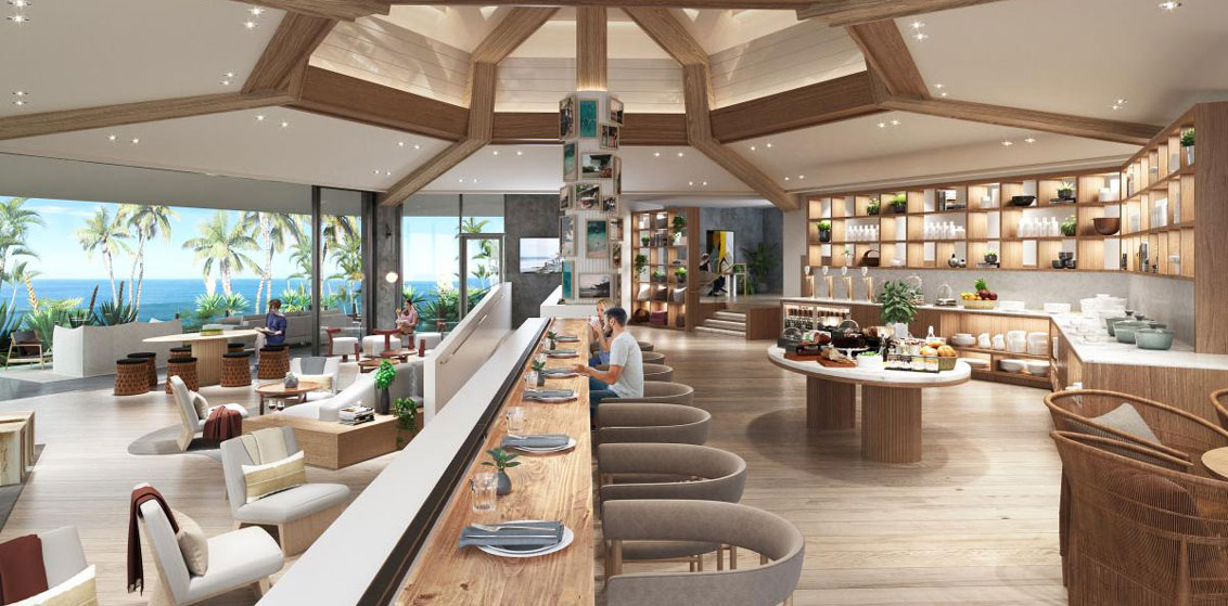 Beyond the lobby, infinity-style water features will lead guests to a terraced pool deck with a new adults-only pool, redesigned family-friendly pool, and front-row views of the crashing waves and surfers just beyond.
