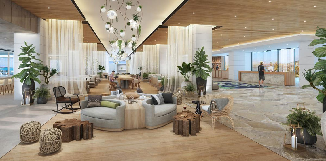 Taking its cues from nature, the new light-filled lobby has had walls replaced with windows to create awe-inspiring views of the seemingly endless stretches of beaches, surf and sky in either direction. To celebrate the local artistic community, the lobby will feature large-scale works of art by Hawaii-based artists.