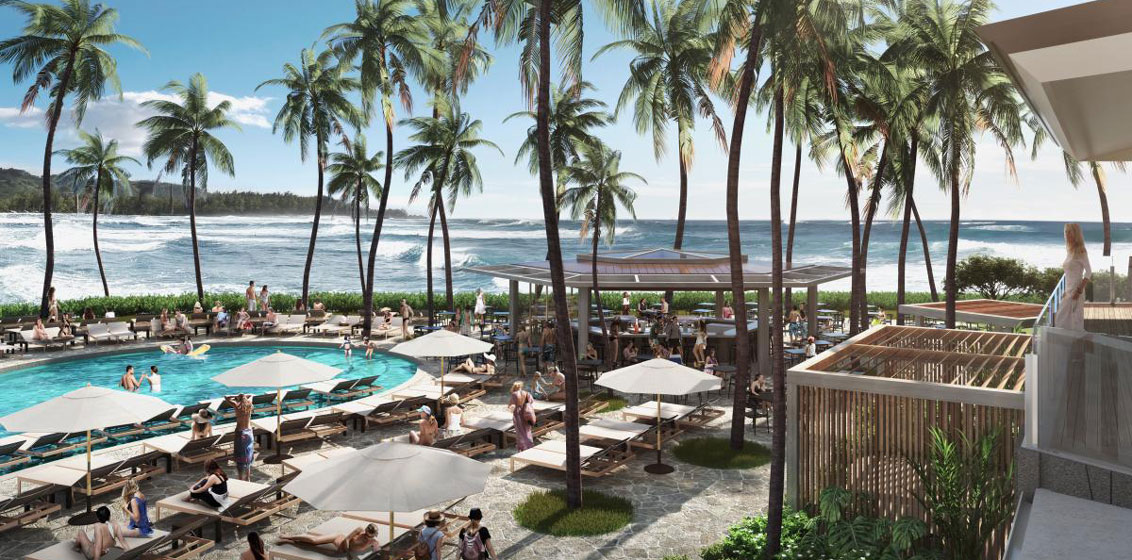 Lead image: Pool Bar rendering at the reimagined Turtle Beach Resort, Oahu, Hawaii