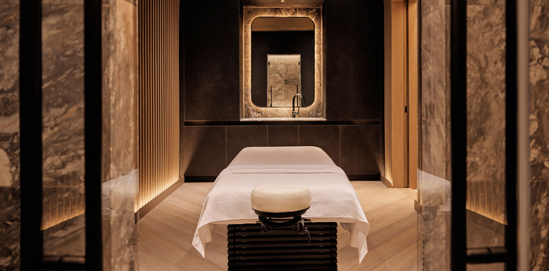 Highlight, also, is the black eatertainment wall, with minibar (Krug and Whispering Angel), Nespresso, snacks and an ‘alternative pharmacy’. I could have purchased awake and restore supplements, anti-jetlag help, travel probiotics, hypertonic ampoules, high-performance power kit, magnesium sleep drops, sex and lover’s oil (singular) – and a pencil case. Add to the hypothetical shopping bag full work-out gear, aromatherapeutic candles, eye mask, facial puffs, detox hydrolats, and, the most expensive item, high-performance anti-ageing and filler lip treatment, US$125. It is amazing there was room for a bed.
