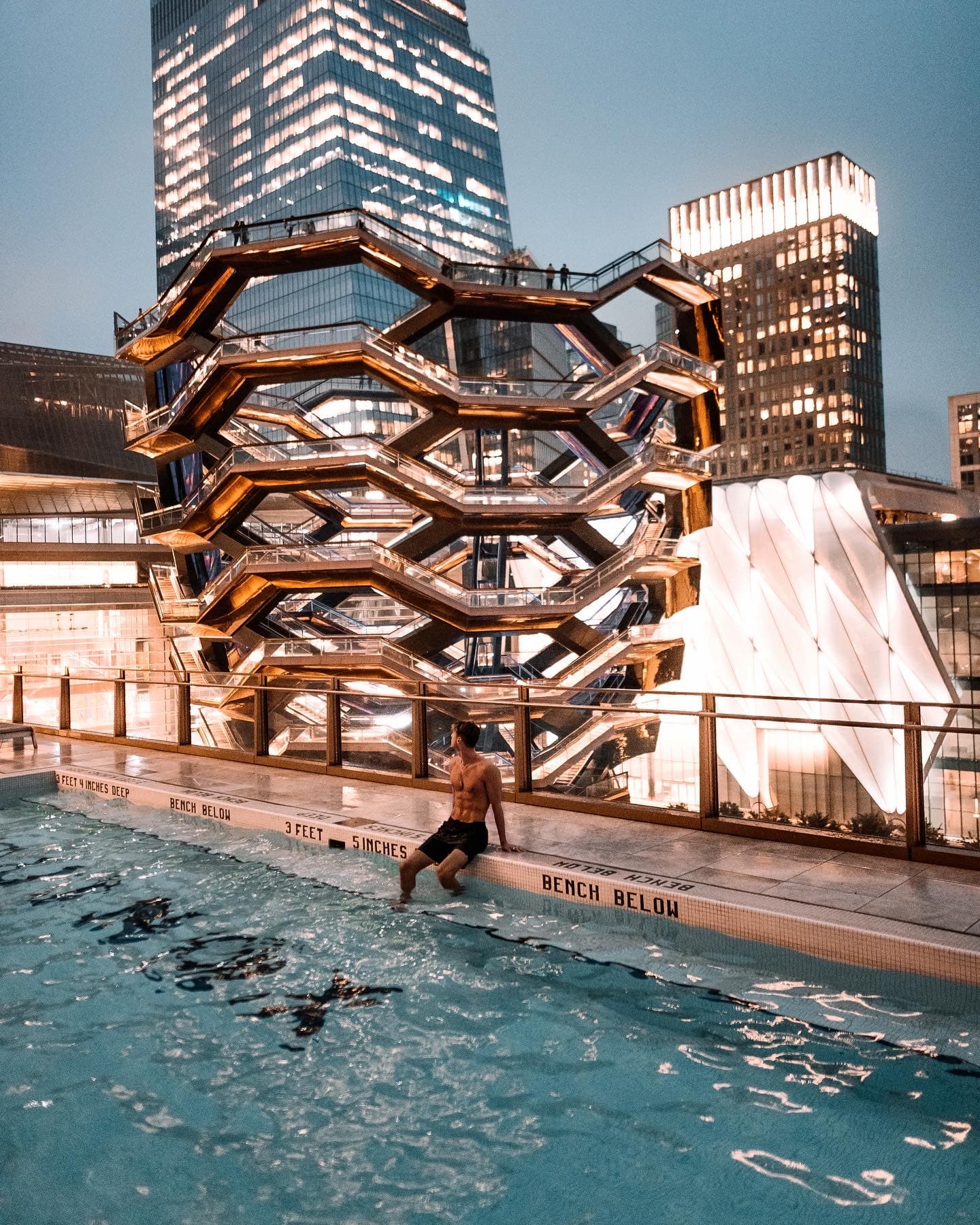 One of many reasons the 212-room Equinox Hotel is unique is its adjacent climbing frame, namely architect Thomas Heatherwick’s 45m-tall honeycomb-shaped Vessel sculpture. More one-offs: enter the hotel’s main door to walk past an undulating aluminium and steel wall (remember distorting mirrors at fairgrounds?). At the 25th floor reception, fashionistas in white suits explained that the David Rockwell-designed hotel occupies floors 24-38 of the 92-floor Related-owned building, anchor of Hudson’s Yards redevelopment on the city’s west side.Equinox Hotel’s corner room 3211 looks across the Hudson to New Jersey. The room’s functionality was relieved by a wall-set artwork of overlapping grey circles, a minuscule cactus and a heavy Phaidon hardback, Vitamin C: Clay + Ceramic in Contemporary Art, 2017.
