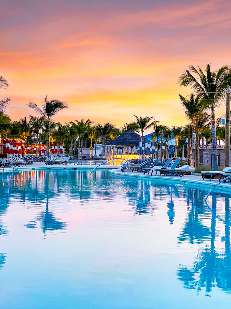The new beach club is a resort-like experience designed for relaxation and sits on the westernmost part of the Bahamian islands. This photo and video gallery (click an image to zoom in) shows the beach club centred around an expansive lagoon-style pool.