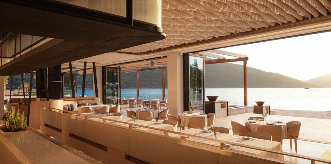 One&Only Portonovi is positioned on the edge of the Adriatic Sea at Boka Bay, with moated walled towns and a backdrop of unspoilt coastal mountains.