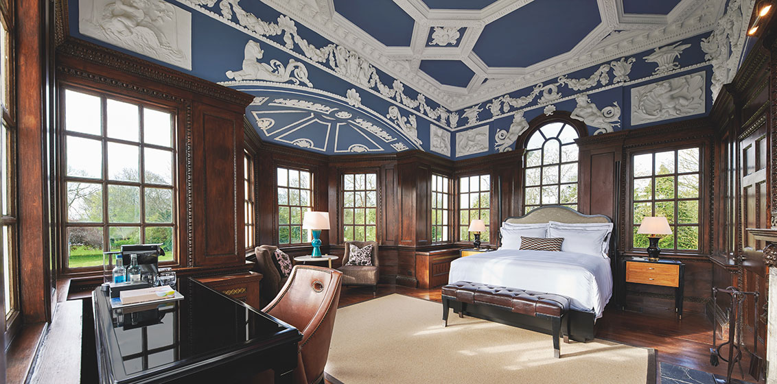 Kuala Lumpur-based YTL bought Monkey Island in 2015 and spent four years elevating the Estate to true global-luxury level (the hotel, under Manager Matthew Facey, is SLH). Designer Alexandra Champalimaud, a long-time partner of YTL’s owning Yeoh family, was here confined by strict heritage regulations to colour-free, other than greenery wallpapers in some Temple corridors: Pavilion, incidentally, has an original monkey ceiling in one lounge. She couldn’t change the Wedgwood sculpted ceiling in bedroom #201, the presidential Wedgewood (sic) Suite, where windows on three walls overlook the island – home to wild ducks and deer – and river both sides.