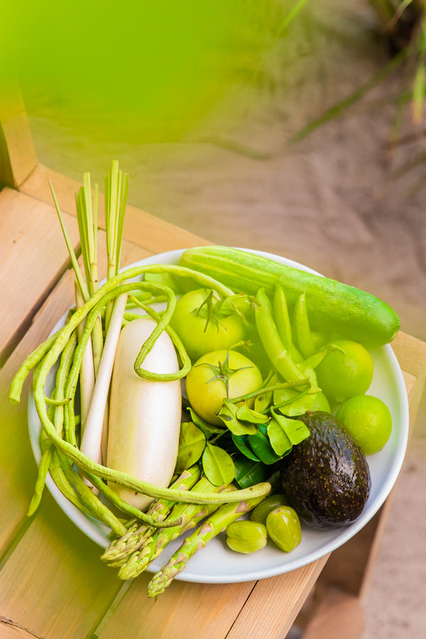 Each colourful menu features six courses – Cleansing, Crispy, Raw, Grains, Fire, Sweets – with simple yet innovative dishes that showcase the finest seasonal vegetables, salads, fruit and herbs cultivated at Soneva Fushi.