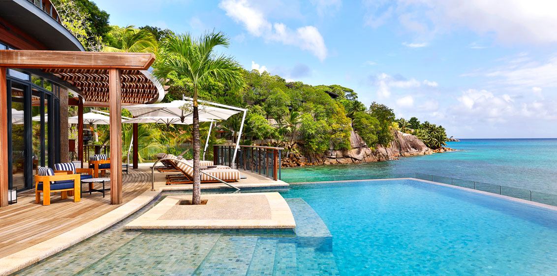 Originally built as a family dwelling by celebrated Italian photographer Gian Paolo Barbieri, this hideaway comprises 41 impeccably designed guest rooms, suites, and villas which all offer unobstructed ocean views, adorned with distinctive natural décor echoing the rugged beauty of the Seychelles.