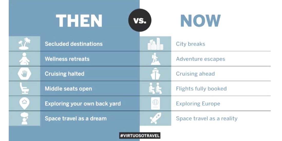 “Last year travellers were flocking to those wide-open spaces, the National Parks did very very well and now we’re seeing a return to city stays. Self-care and wellness retreats were really what led the way, but now adventure travel is having a resurgence. Cruising which was non-existent in 2020 is coming back and showing momentum.”