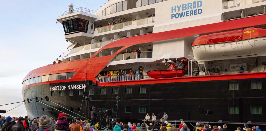 Hurtigruten Expeditions‘ Norwegian-built hybrid ship MS Fridtjof Nansen was christened with a lump of ice during a folk festival at Longyearbyen, Svalbard last week.