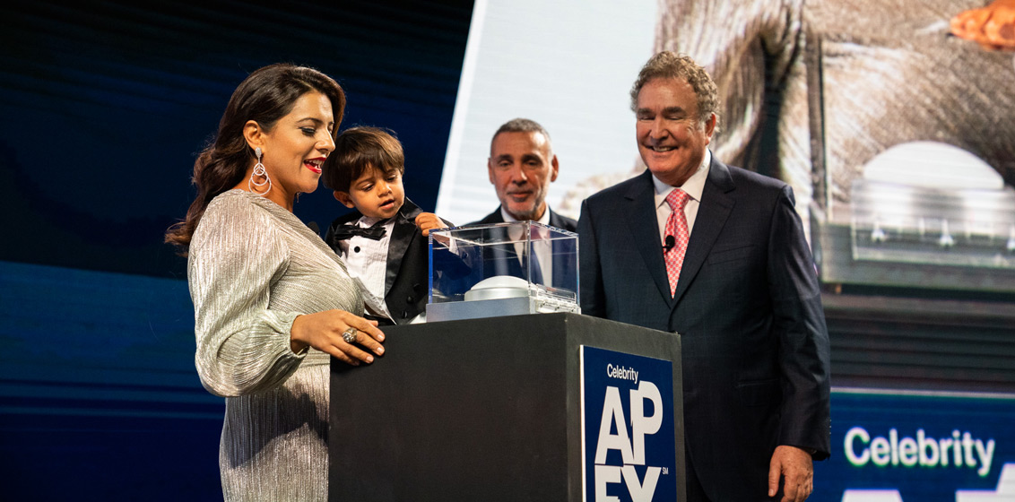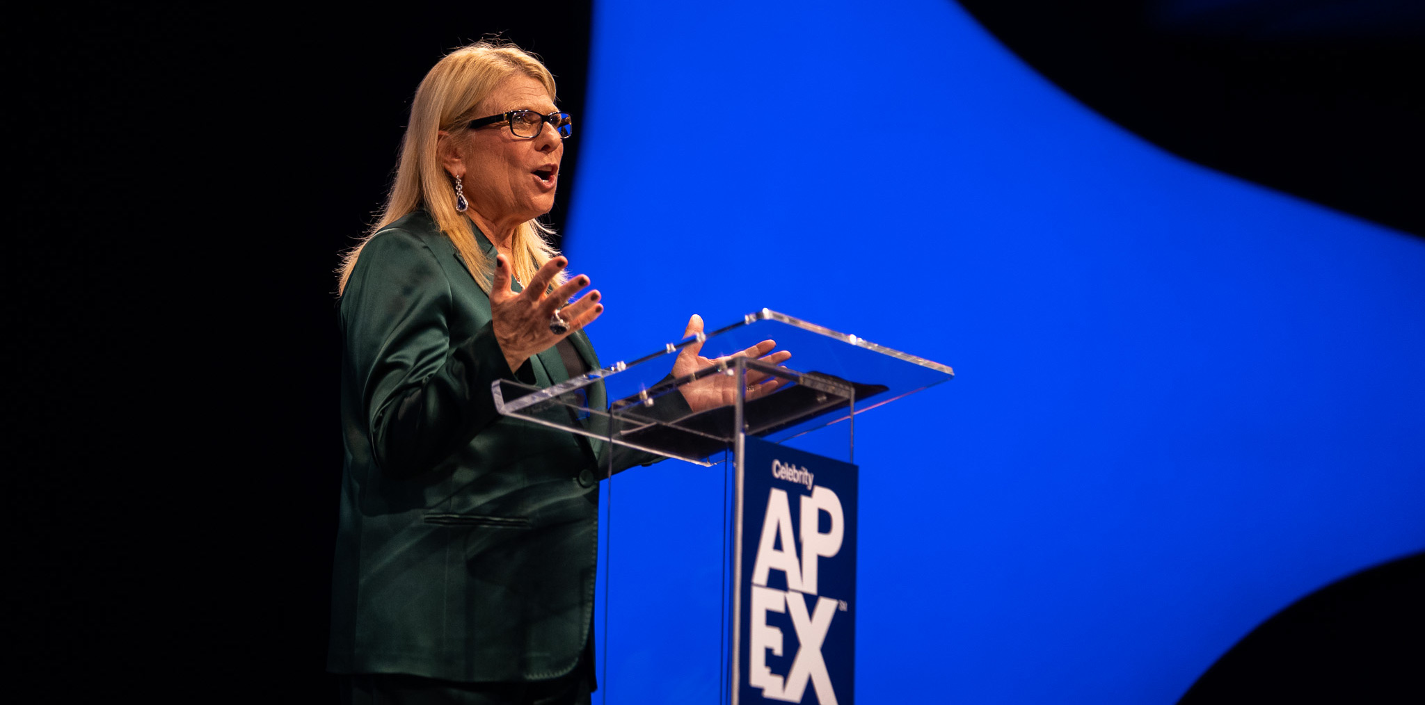 Joining executives onstage, and in keeping with nautical tradition, Saujani officially named Celebrity Apex on board the ship.