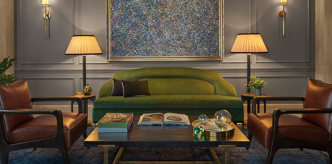 Both Tiffany and Zegna in fact have significant stores actually in the hotel, with entrances and window displays facing both Newbury Street and the sparkling black marble lobby. Also in the lobby is the 1927-vintage mail drop, next to the fully modernised elevators. The ground floor, and first floor with two imposing ballrooms with twig-design carpeting mirroring outside nature, are designed by Jeffrey Beers. Stunning modern art complements decades-old Murano chandeliers.