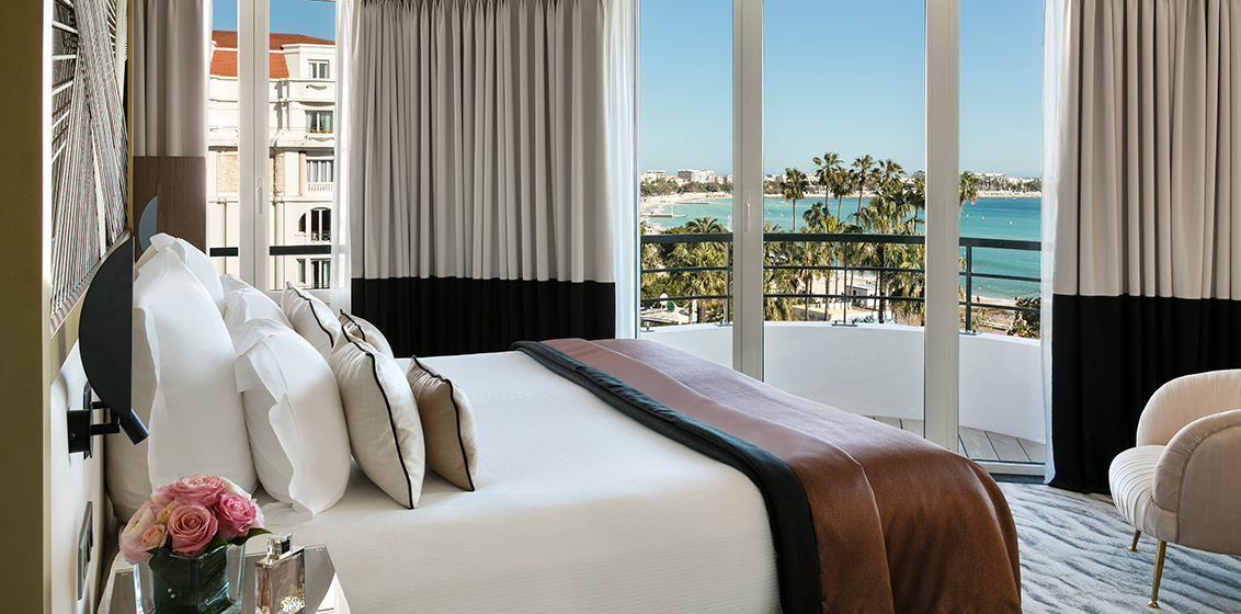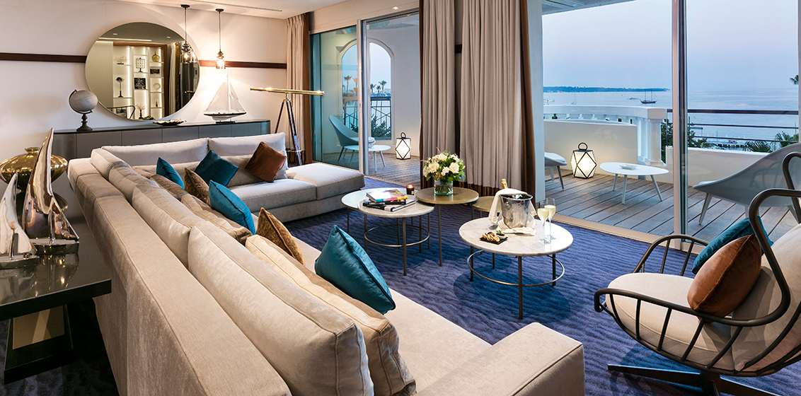 Everyone who knows obviously wants a sea-facing bedroom. The 450 sq m Suite Majestic, on the 7th floor rooftop, has an 11-metre pool out on its 150 sq m terrace looking straight across La Croisette to the much-photographed steps of the Cannes Film Festival. Cleverly, when the hotel was constructed back in 1926 it was thoughtfully set 100 metres back from La Croisette for maximum quiet.