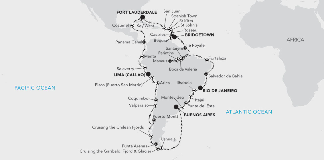 Operating roundtrip from Fort Lauderdale and departing on 4 January 2024, Silver Nova will circumnavigate Latin America, including the Amazon River to Manaus, exploring 38 destinations in 18 countries. The voyage will be the first to include round-trip Business class flights – an offer that will be extended to all future Silversea Grand Voyages across the fleet.