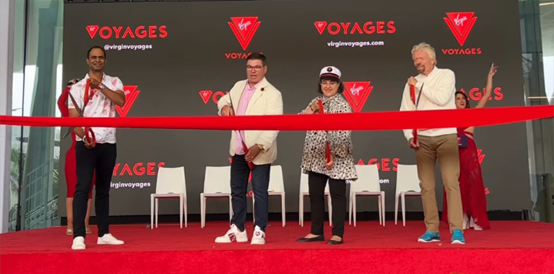 On hand for the ribbon-cutting and festivities was Virgin Group founder Sir Richard Branson, Virgin Voyages CEO Tom McAlpin and Chief Commercial & Experience Officer Nirmal Saverimuttu, accompanied by Miami-Dade County Mayor, Daniella Levine Cava.