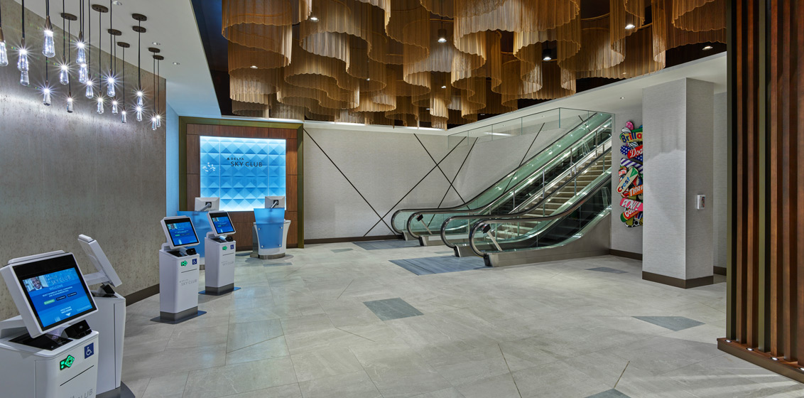 Guests can check themselves into the lounge at one of five self-service kiosk stations. The kiosks are designed for ease of use and will speed up Club access for guests. (The larger of the two Delta Sky Clubs on T2 will remain open; with both Clubs operational, approximately 800 guests will be able to enjoy the lounges simultaneously.)