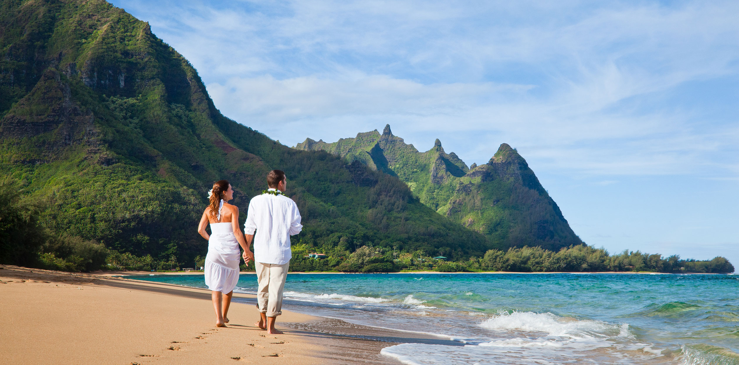 Say your vows under the North Shore sun, at Timbers Resort on the West Coast or on the sands of the South Shore on a historic estate like Kilohana or the stunning Grand Hyatt Resort & Spa. Perform a traditional ceremony or do something unique that speaks to you. The beautiful “Hawaiian Wedding Song” made famous by Elvis in the movie “Blue Hawaii” (which was filmed on Kaua‘i) is often sung at Kaua‘i ceremonies.