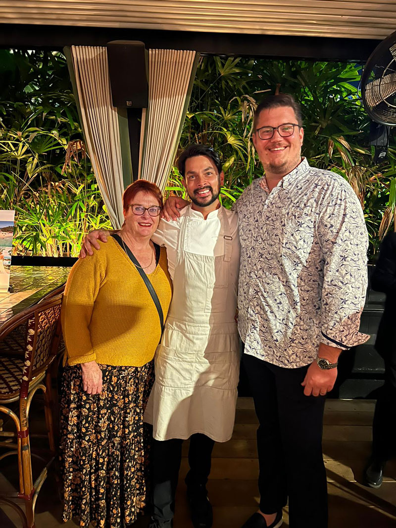 Lead image: Chef Louis Tikaram, Logan Miller and Nanuku Resort General Manager with guests at the Brisbane event.