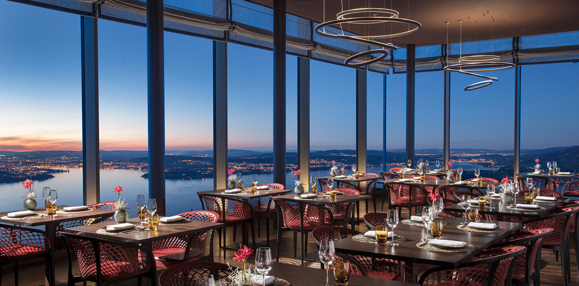 The 60-hectare resort, atop peaks and surrounded by serious mountains, includes several hotels. Crème of the Swiss cream is the nine-floor Bürgenstock Hotel and Alpine Spa, 2017-vintage monumental. Of its 102 rooms, #706, the Penthouse Suite, is sensational. It takes up most of the top floor, with a squash court-sized terrace (open roof, three open sides and a cantilevered feel). Inside, a working log-look fire looks into your double soaking tub which in turn overlooks pastures below.
