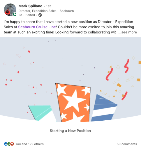 In a post shared on social media this week (see right), Spillane celebrated his cruise return with Seabourn, saying he “couldn’t be more excited to join this amazing team at such an exciting time! Looking forward to collaborating with the Seabourn team and industry colleagues in this new role”.