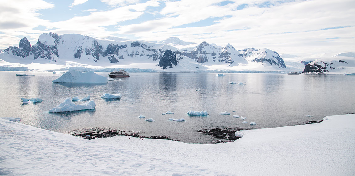 For five days, weather conditions permitting, guests will embark on zodiac outings and landings to explore Antarctica’s vastness – ice floes, tabletop icebergs, mountain peaks that plunge into the sea, volcanic beaches, and icy bays. Travellers will also visit research stations and former whaling stations.