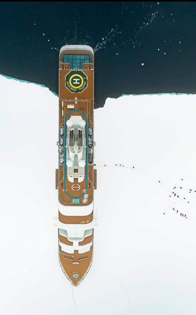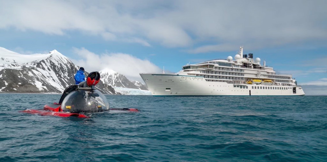 Aboard the 183-metre expedition ship, Crystal Cruises operated a two-guest (plus pilot) submersible in Antarctica in its debut (and only) Antarctica season in late 2021/early 2022 before the brand’s collapse in February. The ship also came equipped with 18 Zodiac boats, 14 kayaks, a remote operational vehicle (ROV) that offered underwater views to guests from the comfort of the ship and had two helicopters assigned to it, though it is unclear if they had been delivered as yet.