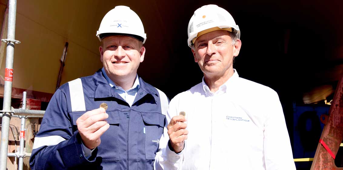To mark the occasion, a ceremonial coin was welded to a massive steel docking block forming the ship’s keel, officially marking the start of construction. Placing the coin in this time-honored maritime ceremony were Jason Liberty, President and CEO of Royal Caribbean Group, the parent company of Celebrity Cruises; and Laurent Castaing, General Manager of Chantiers de l’Atlantique.