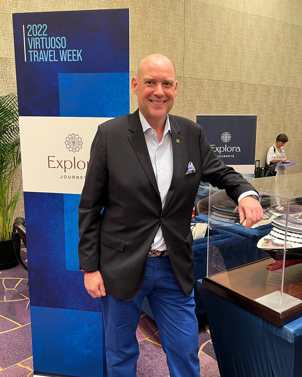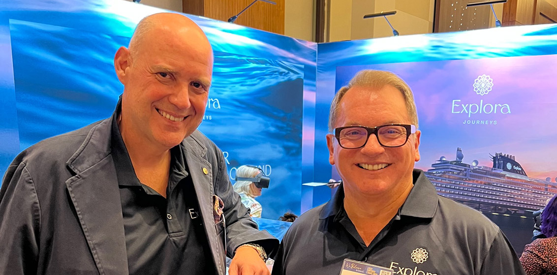 Lead image: Explora Journeys’ CEO Michael Ungerer and Chief Sales Officer, Chris Austin, at Virtuoso Travel Week 2022.