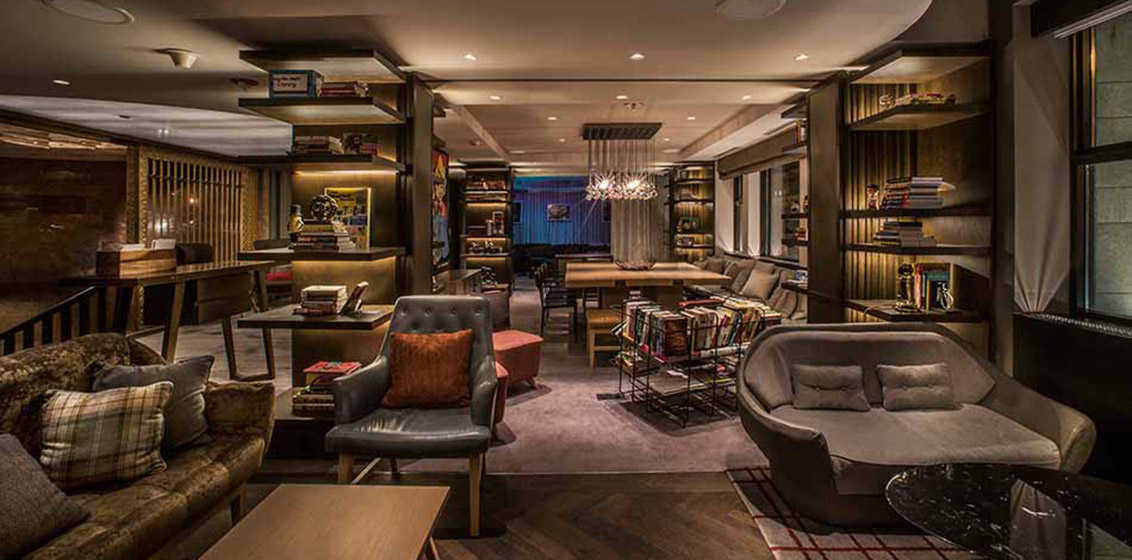 Virgin Hotels’ bedrooms are ‘Chambers’, and dressing areas can be separated from the rest of the space. Bedrooms are floors four to 24. Top-floor Chamber #2402, 80 sqm, has big-window views over raised tracks of The Loop, taking public transport around the immediate theatre-land – the hilarious comedy Drunk Shakespeare’s across the street. Love the display of all-taupe books on the white wall by the white freestanding bathtub. They are photos, but there are plenty of real books down in the versatile Commons Club library.