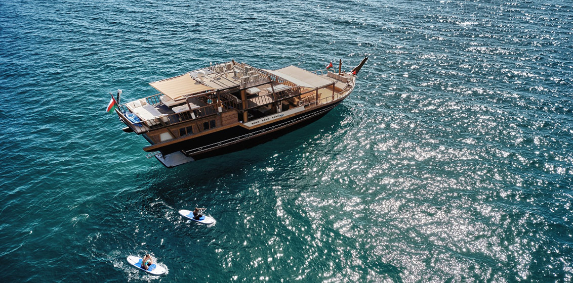 Guests can discover the coastline and fjords of the Musandam (also known as the Norway of the Middle East) with close friends or family aboard a traditional, hand-crafted Omani dhow. Once used by traders on epic voyages across the high seas, today, the dhow sets sail to the less-discovered side of Oman.