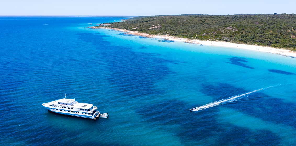 For the ultimate luxury experience, True North Adventure Cruises runs their Adventure South West journey, an eight-night cruise during which guests indulge in the delicacies of the sea, washed down with a glass (or bottle) from the revered cellars of the Margaret River Wine Region, explore endless beaches with icing-sugar white sands, and wondrous wildlife encounters. The TRUE NORTH ship is purpose-built and ideal for reaching shallow river systems, allowing discerning adventurers to experience wilderness straight out of their cabins, in surroundings more akin to one of the world’s most exclusive hotels! Guests enjoy the lavish vantage points including a sundeck, a forward observation lounge, a lounge and an alfresco bar, and the added luxury of an onboard helicopter.