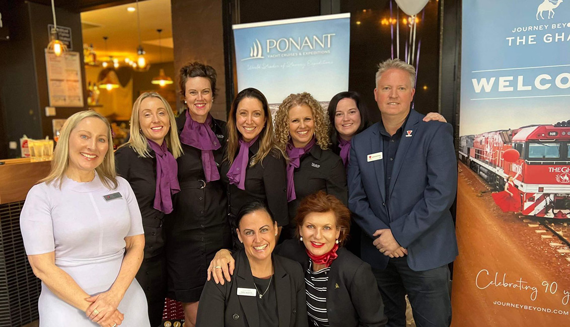 Lead image, from left: Jo Cullen, Viking Cruises; the Wolf & Turner Travel Associates team of Michelle James, Kate Gaskell, Meaghan Wolf, Kellie Woodward and Lauren Venn; and Justin Southern, Virgin Voyages. In front are Ines Iniesta, Journey Beyond and Annabelle Brown, Ponant.