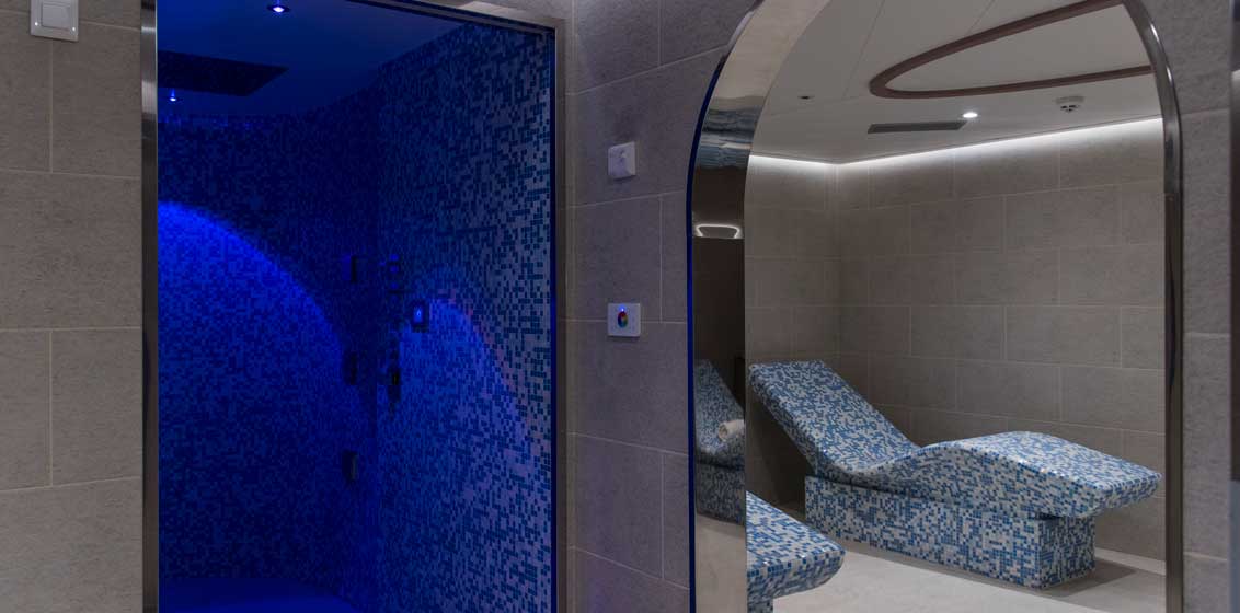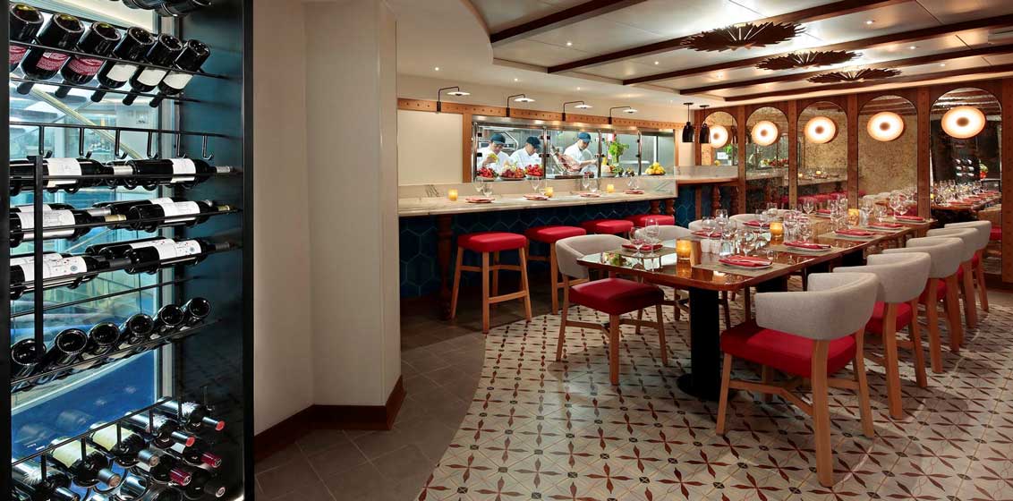 Typically, 27 sq m cabin 628, shares an outer foyer with 630, so great for families. There’s a small balcony, and the TY-Group king-size bed, firm mattress and Egyptian linens, leaves ample space to move around (choose, at time of booking, if you want bedroom or sitting closer to the window). There’s enough storage for a round-the-world cruise, and Europe and US sockets are complemented by inset USB ports, including bedside. The bathroom – twin sinks, Grohe double-shower – has L’Occitane toiletries. 628’s twice-daily housekeeping was meticulously done by a really charming Indonesian.