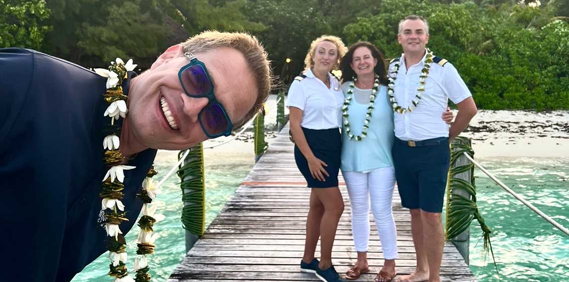 Windstar President Chris Prelog has just completed the most whirlwind week in a career at sea that started 25 years ago. One of many highlights of his company’s 35th birthday cruise, on Windstar Star Breeze, seven nights from Sunday 19 October, was announcing a partnership with the Moorea-based Coral Gardener conservation charity, kicking off with a US$35,000 donation. Another highlight was the presence aboard of the President of French Polynesia, The Hon Edouard Fritch, who hosted the entire complement of cruise guests to a reception at his official palace in Papeete on the last night of the one-off week.