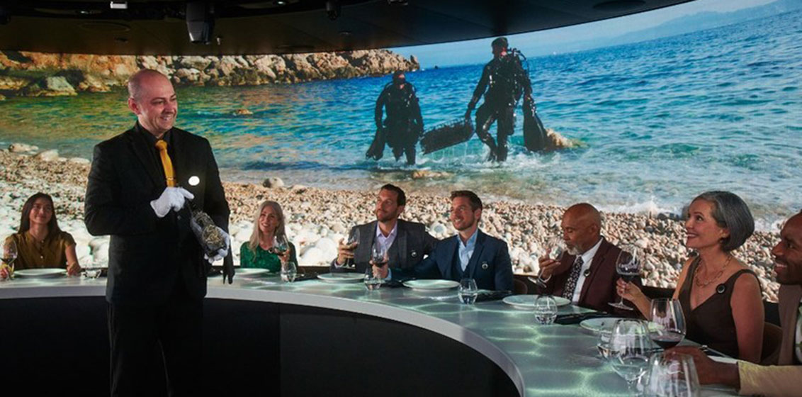 With two seatings nightly, the cloaked venue accommodates 20 guests surrounded by LED walls in a circular format that places guests into featured destinations using stunning 4K cinematography. The Mediterranean takes centre stage as guests are drawn into the memories of a fellow traveller who relives her adventures and local connections made in each destination as her travel journal comes to life. Actress and model Brooke Shields is the voice of Bethany, the voyager who takes guests on the sensory journey.